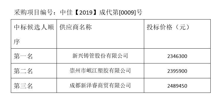 內(nèi)江市水務(wù)有限責(zé)任公司球墨鑄鐵管管材及管件采購(gòu)項(xiàng)目評(píng)標(biāo)結(jié)果公示