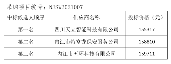 內(nèi)江市污水處理有限責任公司監(jiān)控系統(tǒng)升級改造項目評標結果公示