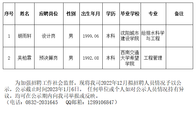 內(nèi)江市水務(wù)有限責(zé)任公司2022年12月擬招聘人員公示