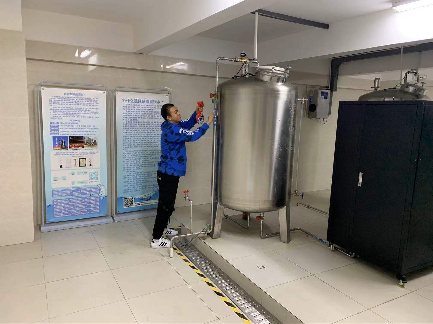 為切實做好內(nèi)江六中高新校區(qū)新學(xué)期的直飲水系統(tǒng)啟用工作,保障全校師生的飲水安全,豪鵬公司運維人員對校內(nèi)直飲水系統(tǒng)集中開展了凈水設(shè)備電器檢查、凈水軟化鹽補(bǔ)充、管道消毒、凈水罐體內(nèi)外和泵房環(huán)境衛(wèi)生清潔消毒,以及終端凈水設(shè)備恢復(fù)調(diào)試等系列工作,并抽取水樣送專業(yè)水質(zhì)檢測機(jī)構(gòu)檢測,檢測結(jié)果均符合直飲水飲用標(biāo)準(zhǔn)。豪鵬公司以其規(guī)范嚴(yán)謹(jǐn)?shù)闹憋嬎芾?,得到了校方高度認(rèn)可。