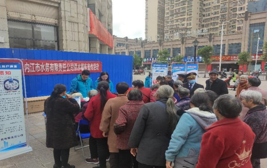 10月27日下午,市水務(wù)公司客戶服務(wù)部、生技部、二次供水服務(wù)公司聯(lián)合開展了宣傳進社區(qū)活動。工作人員統(tǒng)一著裝,黨員佩戴黨徽,現(xiàn)場與內(nèi)江市漢祥小區(qū)居民開展“面對面、零距離”交流。講解二次供水、階梯水價、垃圾處理費、水費單價生成等用戶關(guān)心的問題,并提倡大家節(jié)約用水,宣傳水資源的重要性。