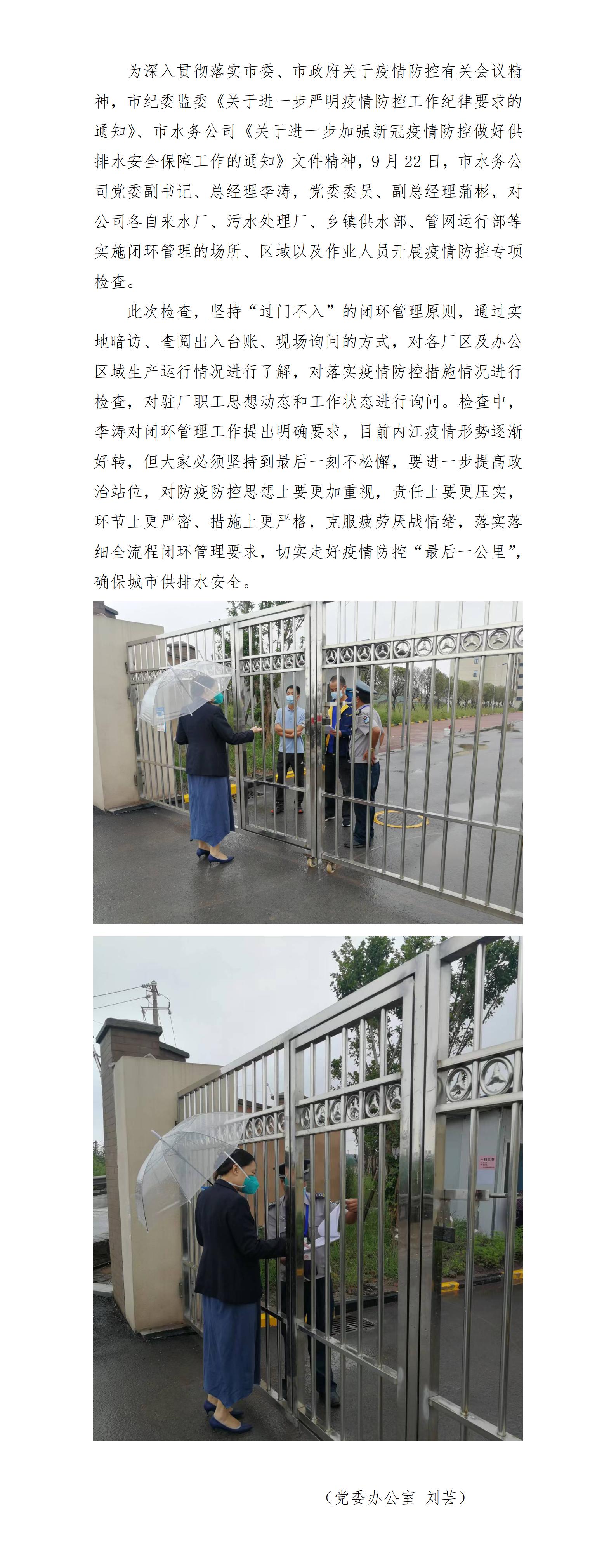 市水務(wù)公司開展閉環(huán)管理專項(xiàng)檢查 筑牢疫情防控堅(jiān)實(shí)防線