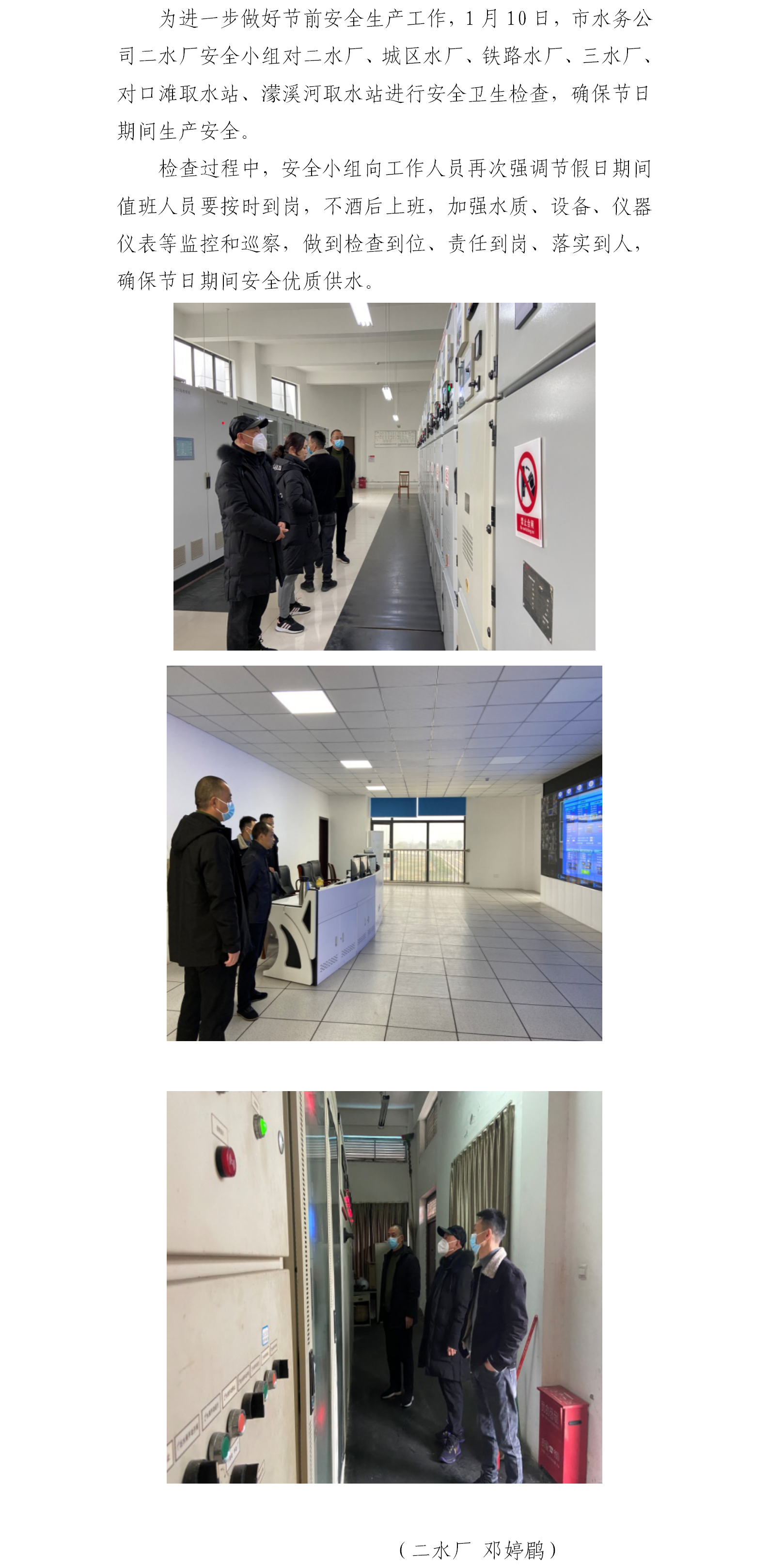 市水務公司二水廠開展節(jié)前安全生產檢查