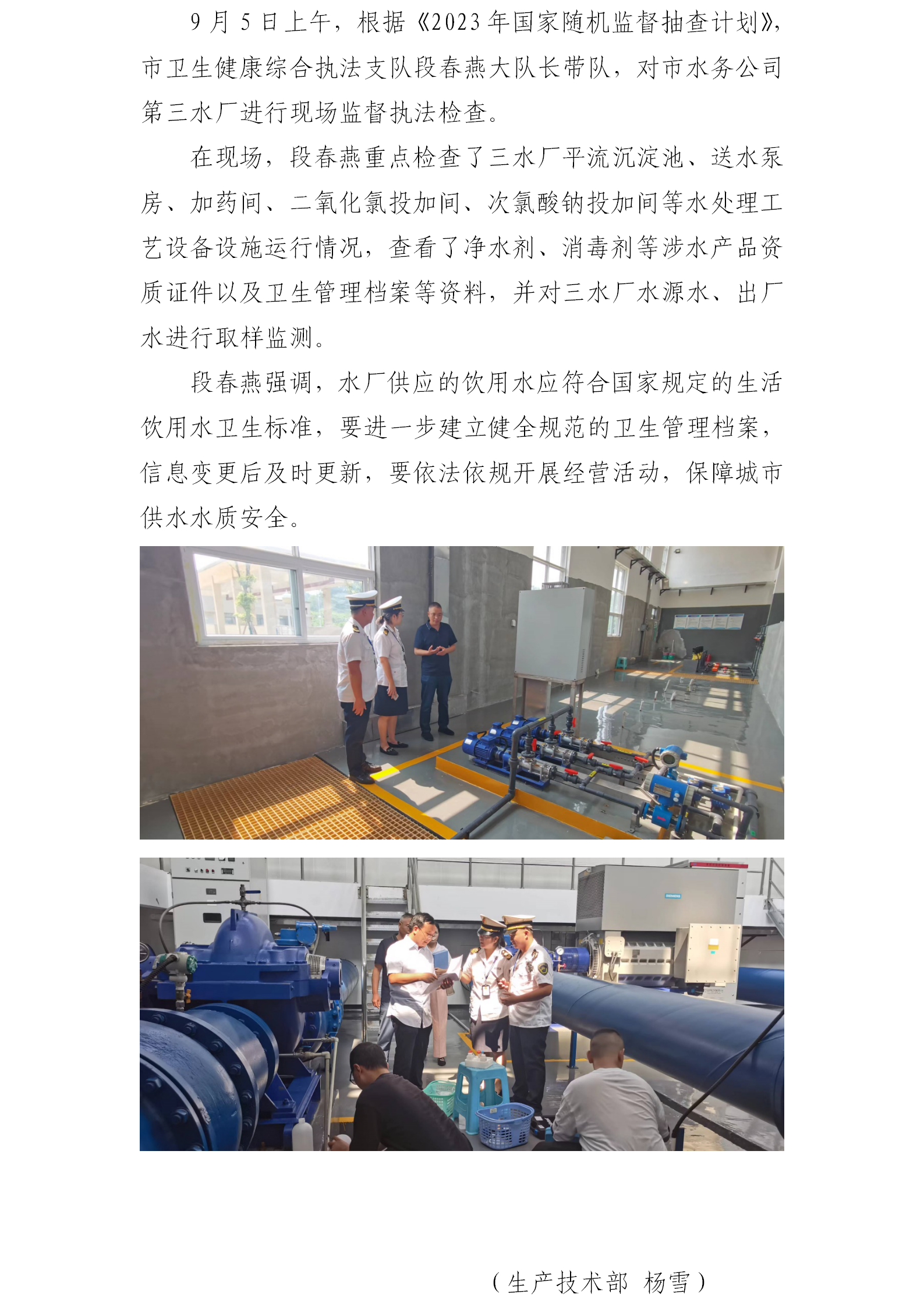 迎接“隨機”衛生執法監督檢查 確保水質安全