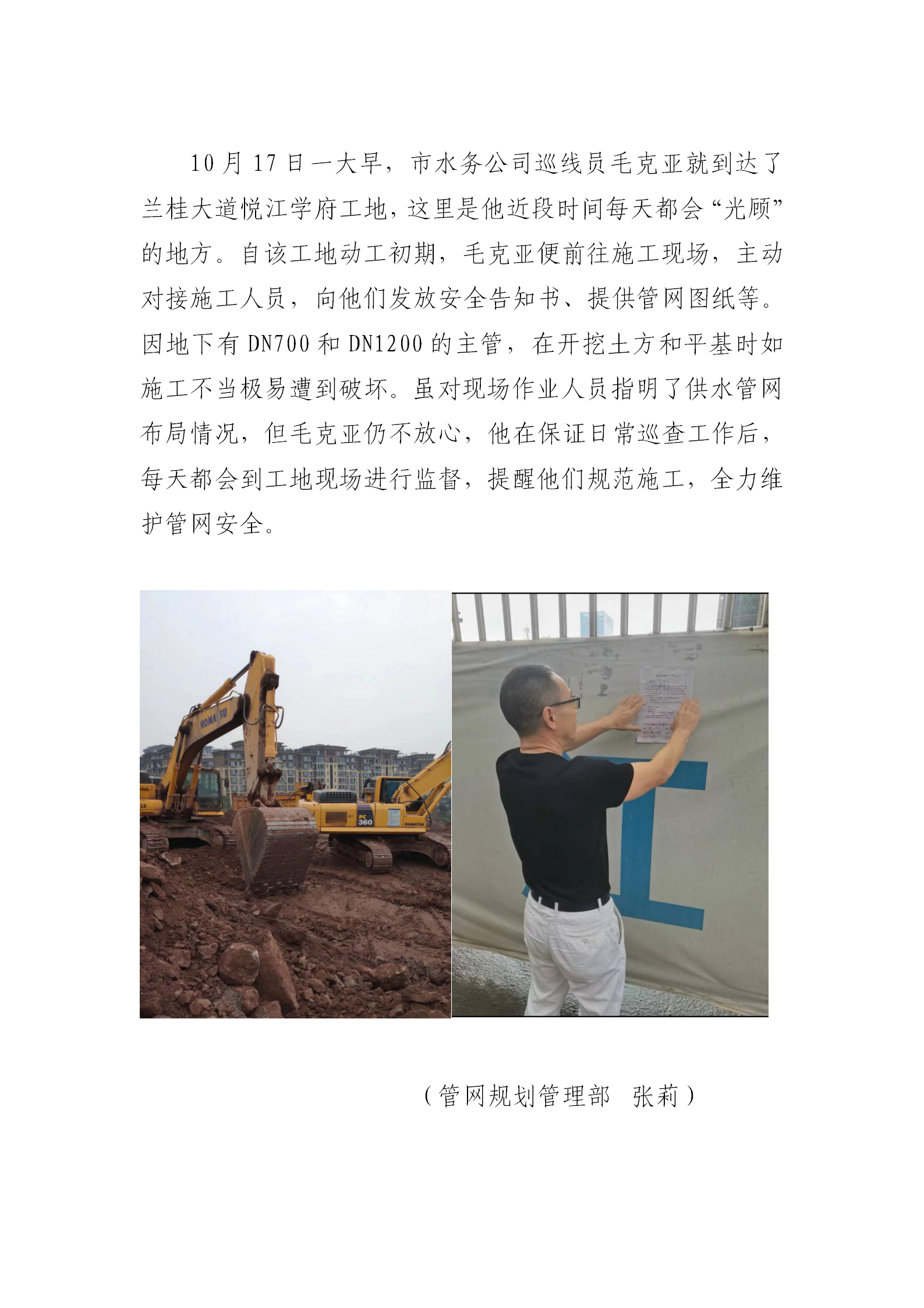 施工現場勤“光顧 管網安全我維護