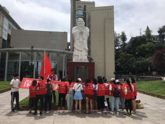 活動首先在師范學院天一廣場舉行了志愿者簽名活動,隨后,大家提上塑料袋沿師院外親水步道往清溪濕地公園方向,清掃沱江河畔白色垃圾。雖烈日當頭,汗流浹背,卻未能阻擋我們前進的步伐,懷揣著對母親河的熱愛,我們志愿從小事做起,從自身做起,弘揚五四精神,爭做優(yōu)秀青年。