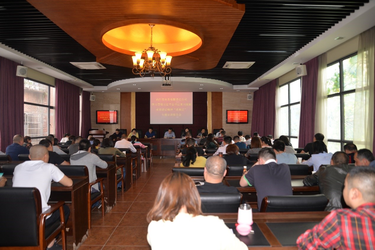 2018年4月4日下午,市水務公司黨委在公司二會議室組織召開了*總書記來川視察重要講話精神學習宣貫會。參加此次會議的共有中層及以上干部、主管、支部委員、團支部書記、后備干部、職工代表70余人。會議由公司黨委副書記李濤主持。